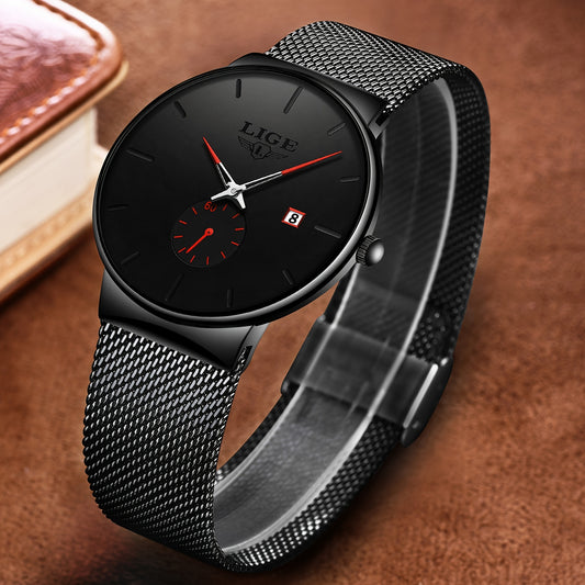 Nouvelles montres LIGE pour hommes, montre à quartz de luxe de marque supérieure, montre-bracelet en acier à mailles, étanche, ultra-mince
